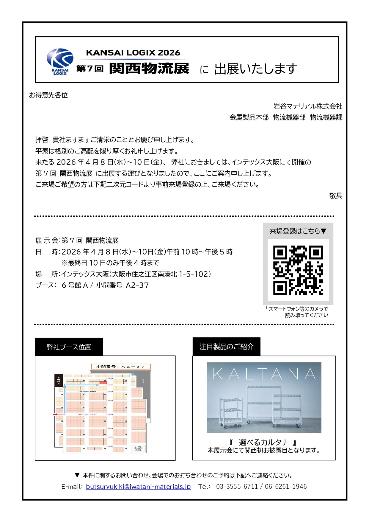 【展示会出展情報】 2026年4月開催「第7回 関西物流展 」